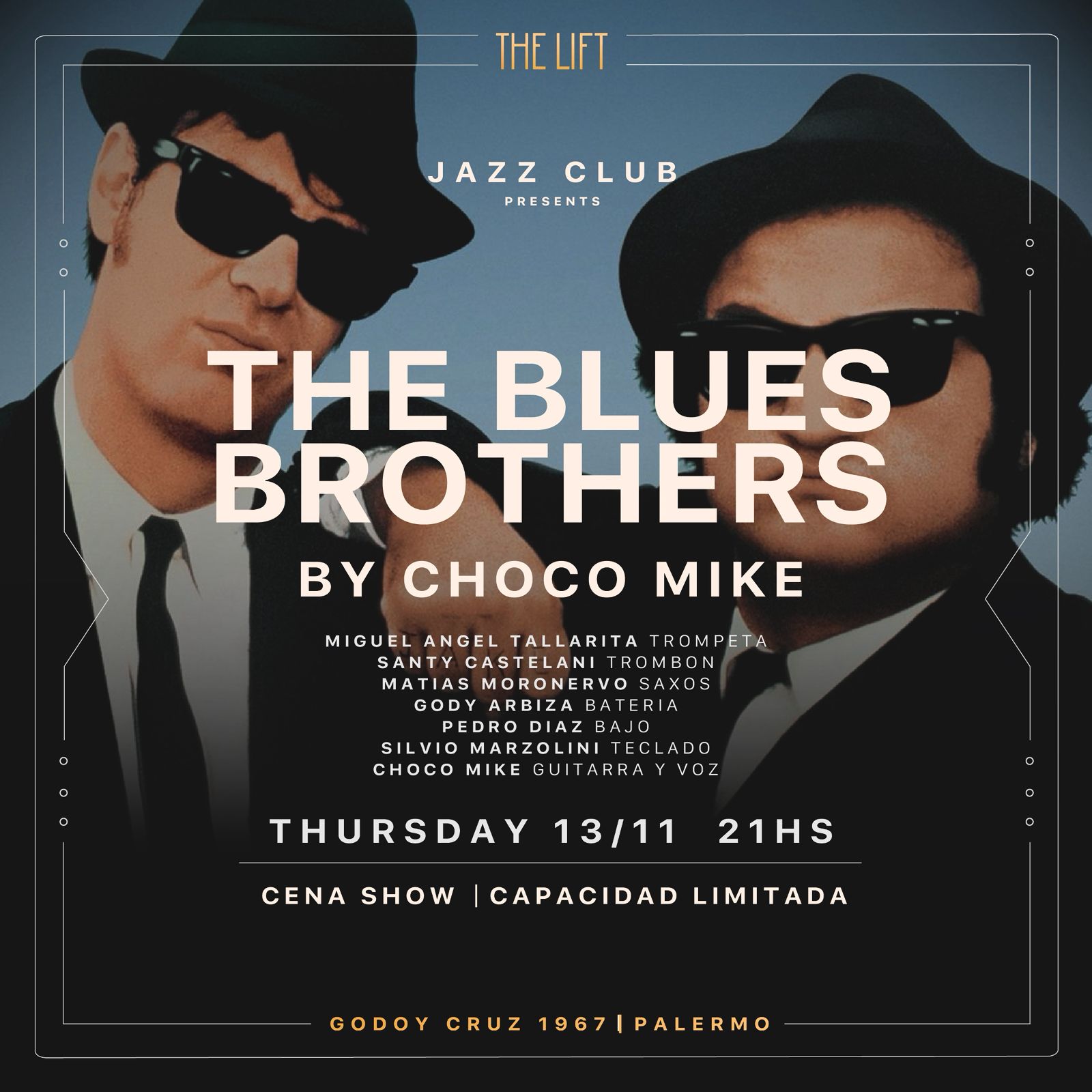 Una noche única rememorando la banda que marcó el curso de la música, desde sus comienzos en SNL hasta su último disco The blues Brothers 2000. Los esperamos!!!
