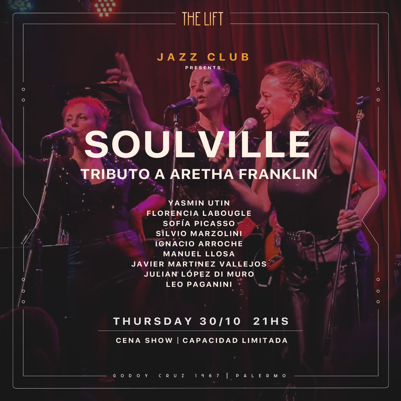Comprar EntradaSoulville sigue presentándose en los escenarios más destacados de la Ciudad de Buenos Aires. Fiel a sus comienzos, el show repasa los clásicos, y algunas joyitas no tan conocidas de la reina del soul, Aretha Franklin.